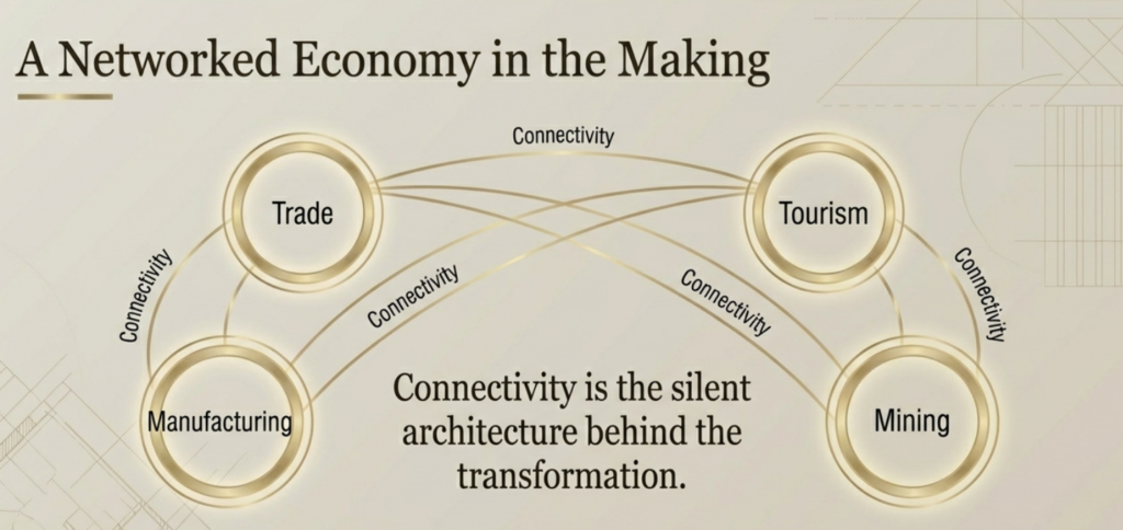 At the heart of this transformation lies a single, powerful enabler: connectivity. From land and sea routes to air corridors linking Asia, Africa, and Europe, Saudi Arabia is rebuilding its historical role as a crossroads of global trade and movement.